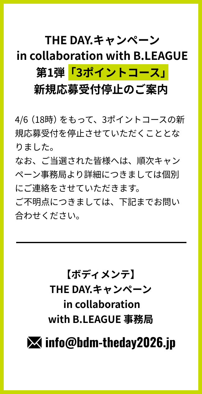 【ボディメンテ】THE DAY.キャンペーンin collaboration with B.LEAGUE 事務局